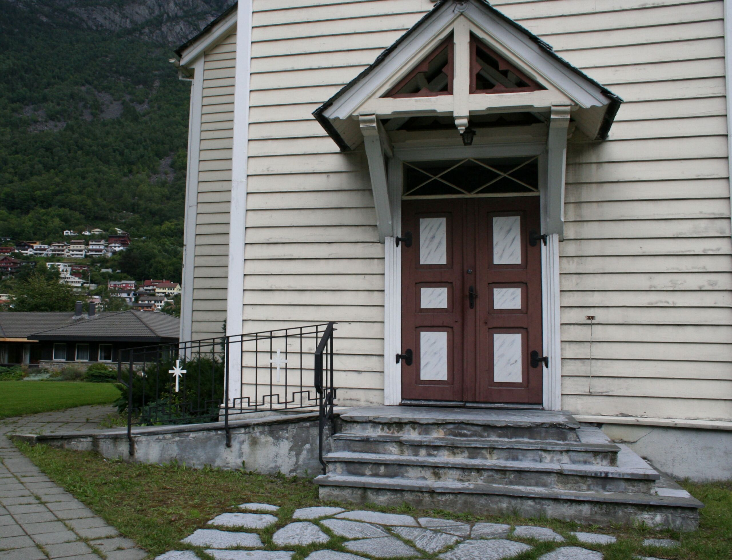 Fil:Odda kyrkje, vestinngangen, AMH 2008.jpg